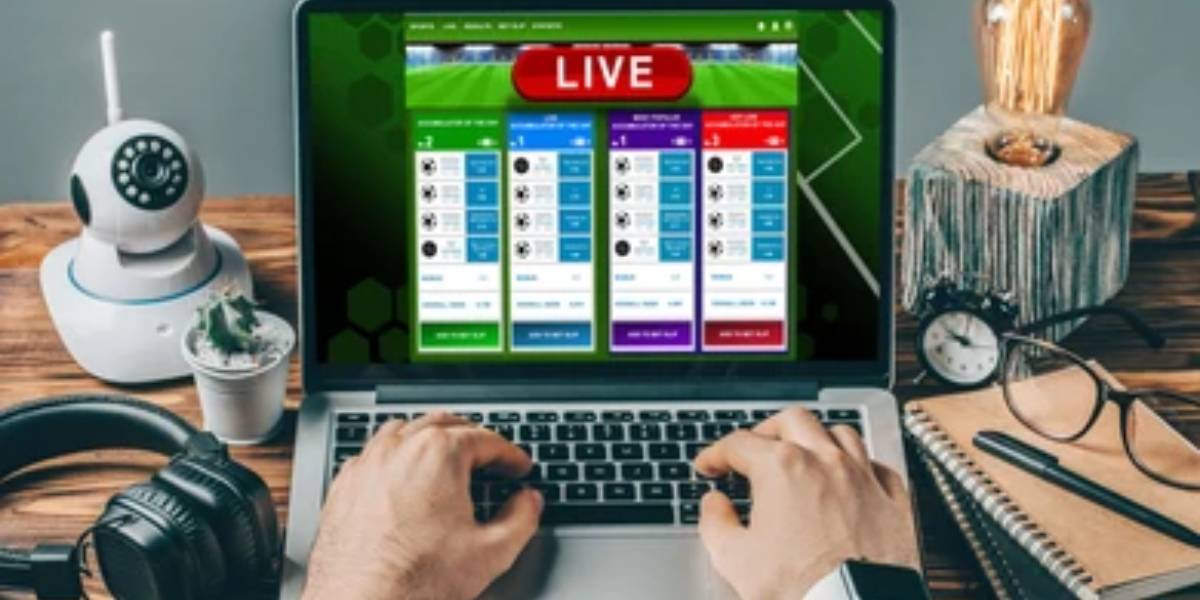 The image shows a person using a laptop with a live betting platform on screen, representing Sports Maximiser by Imperial Wealth betting for automated betting. This tool is designed to help punters streamline wagers, optimise timing, and enhance efficiency through automation in live sports betting.